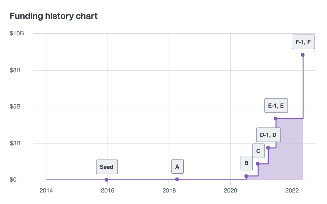 Just a few months after that, in June 2021, the company took another leap forward, raising $109.5 million for its Series E, bringing its stock price up to $21.14 and roughly doubling its valuation again to $4.20 billion.25 This round was led by Coatue, and including a mix of new and existing investors, such as Dragoneer, Durable Capital Partners, 9Yards Capital, Altimeter, Blackstone, and SVB Capital.26