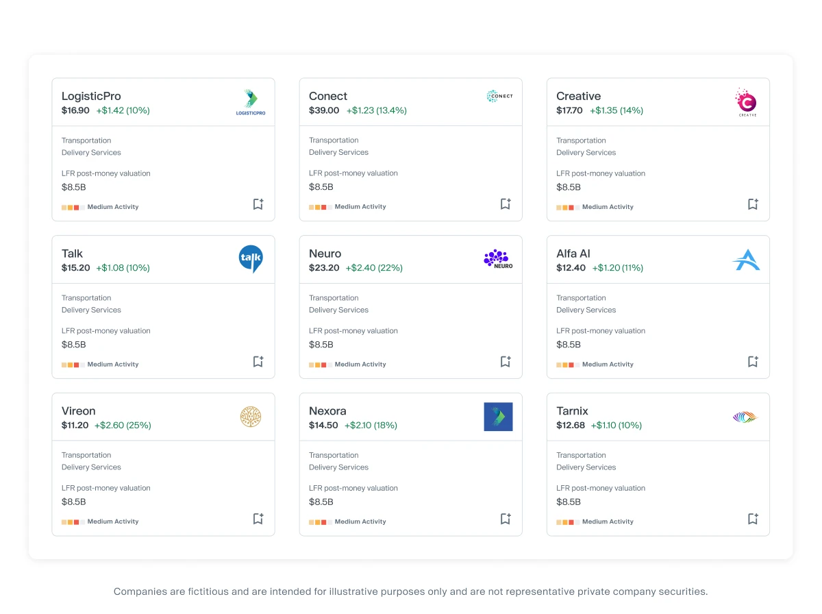 Private companies aren’t traded on public exchanges, so investing typically involves finding a willing seller and navigating company-specific rules and approval processes. Marketplaces help streamline this by connecting buyers and sellers and managing the transaction flow.